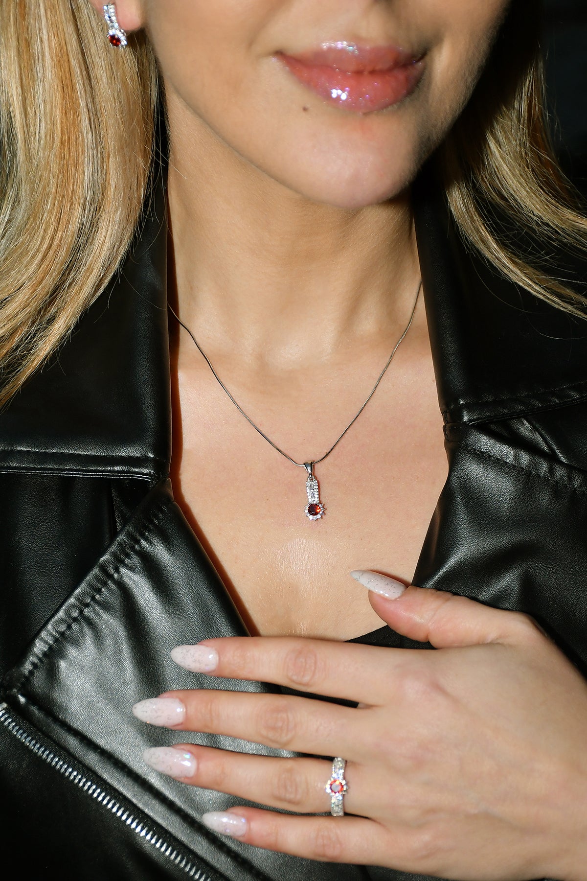 Çubuk Kolye+Küpe+Yüzük (kırmızı)