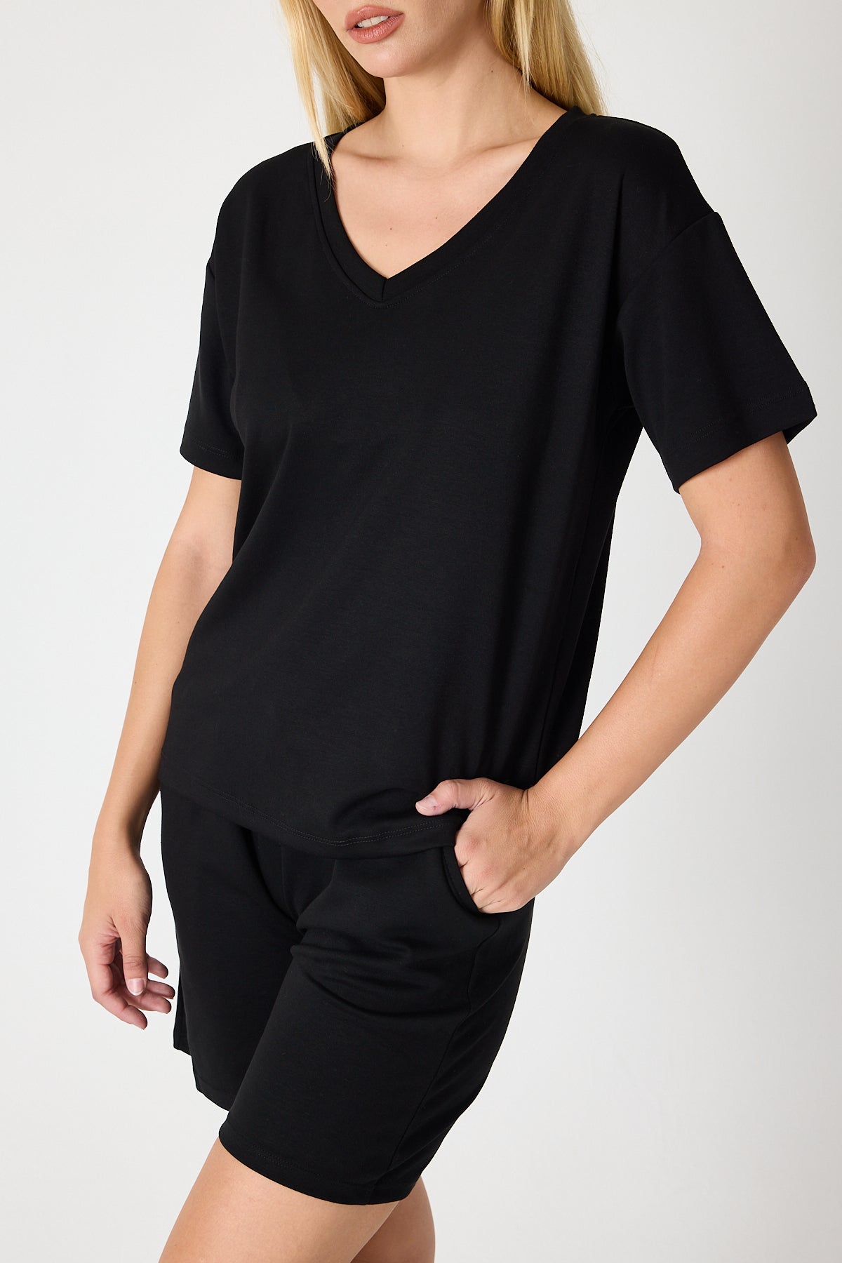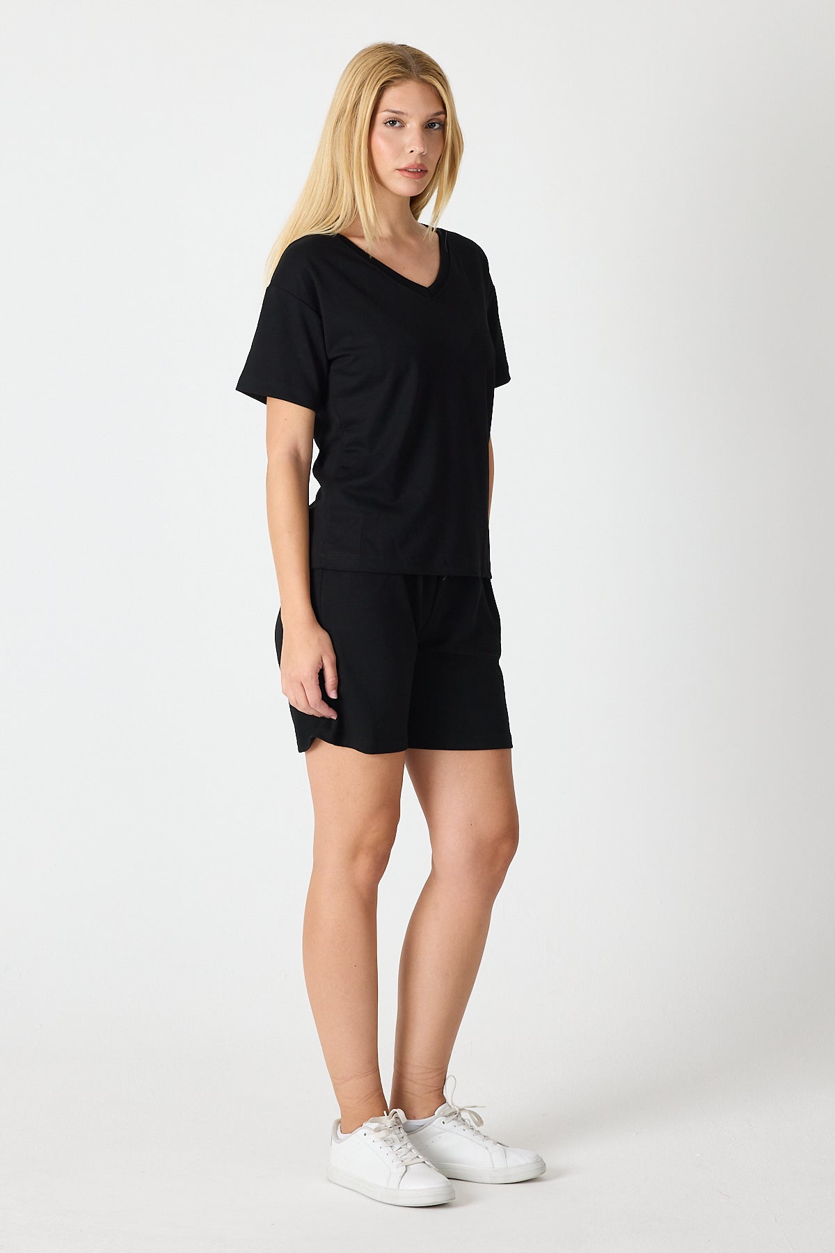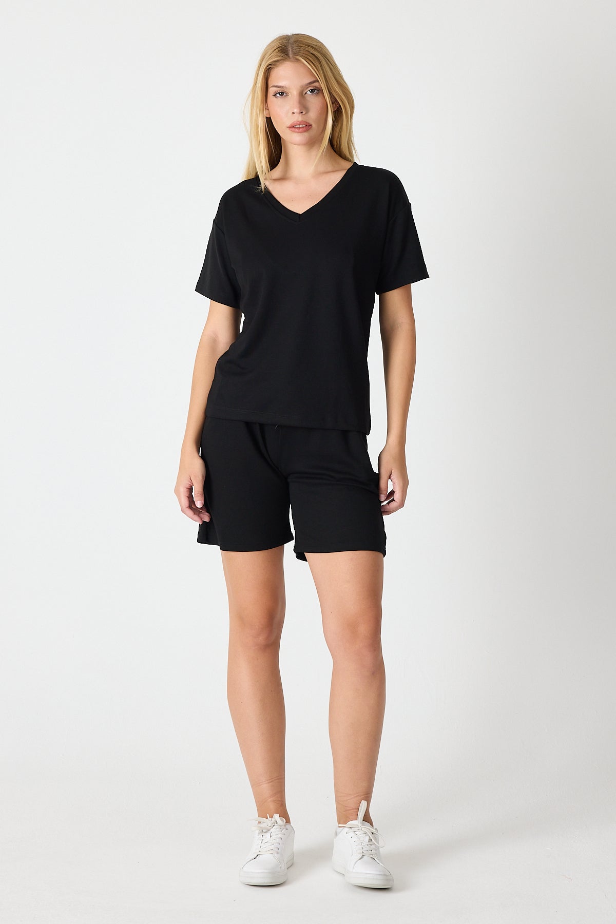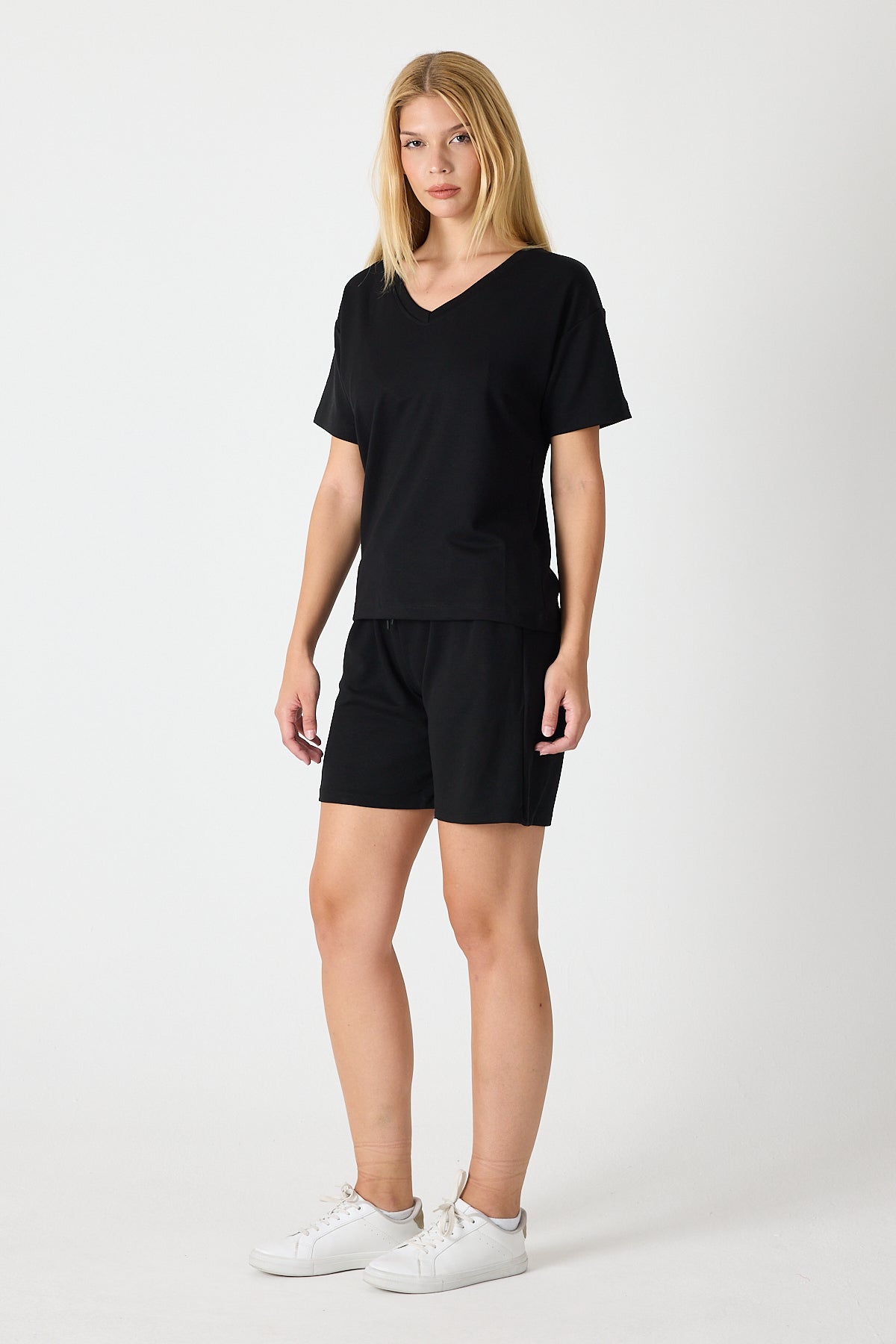 Kadın V Yaka Kısa Kol Şort Takım 2996