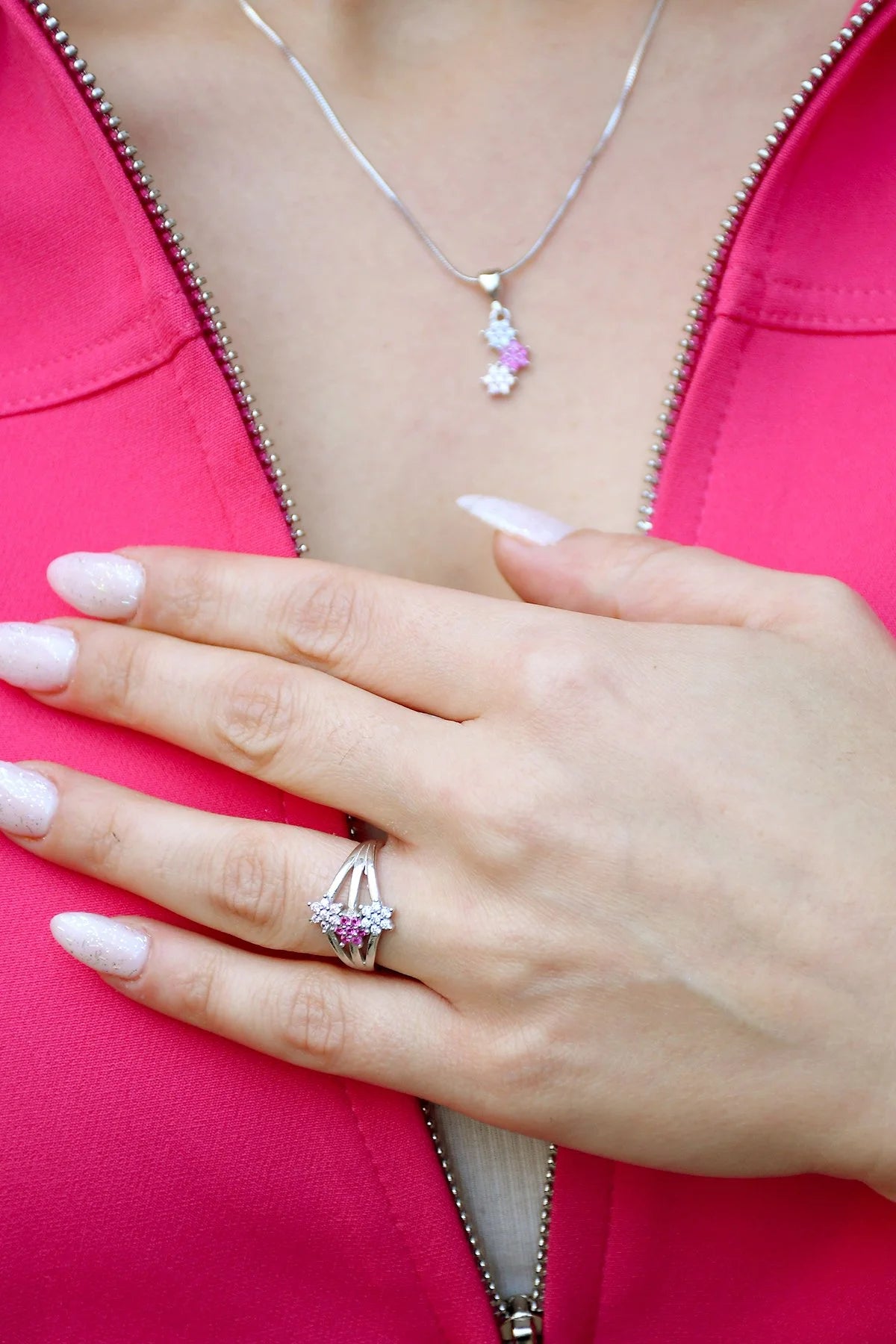 Lotus Kolye+Küpe+Yüzük (Pembe)