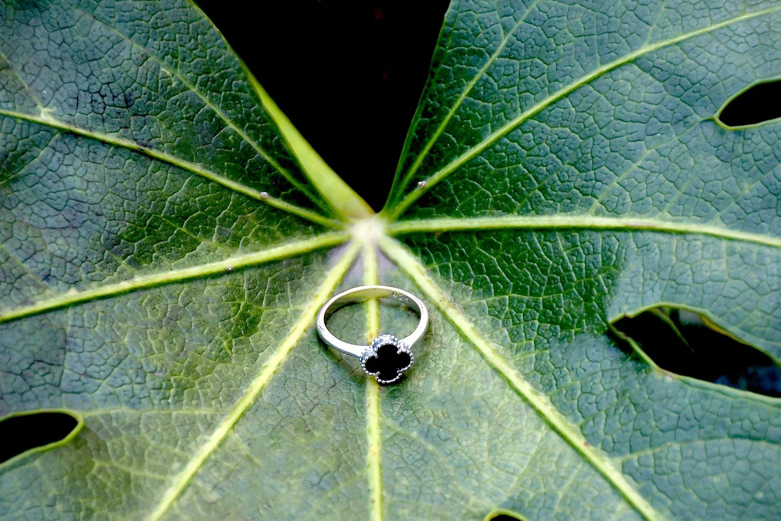 Yonca Kolye+Küpe+Yüzük (Siyah)