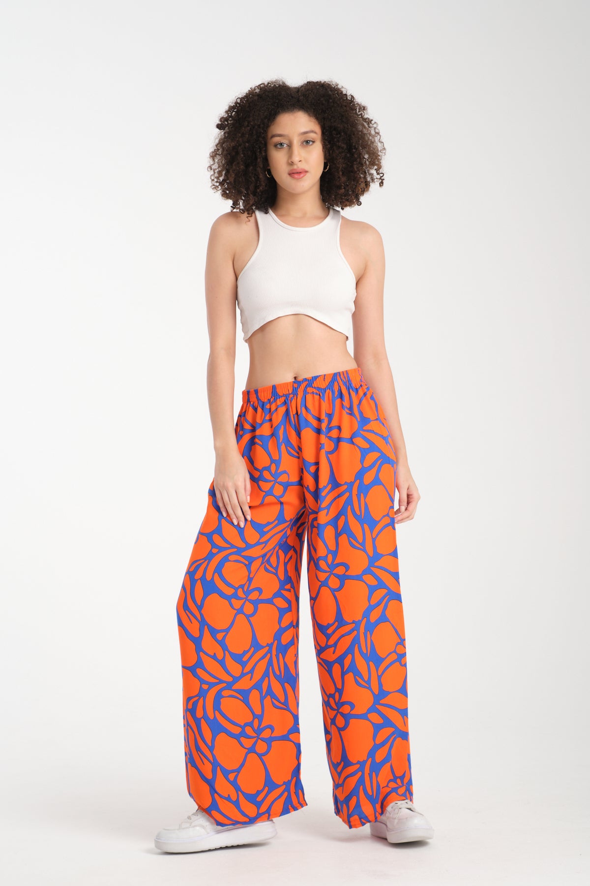 Kadın Desenli Dökümlü Viskon Pantolon 1080